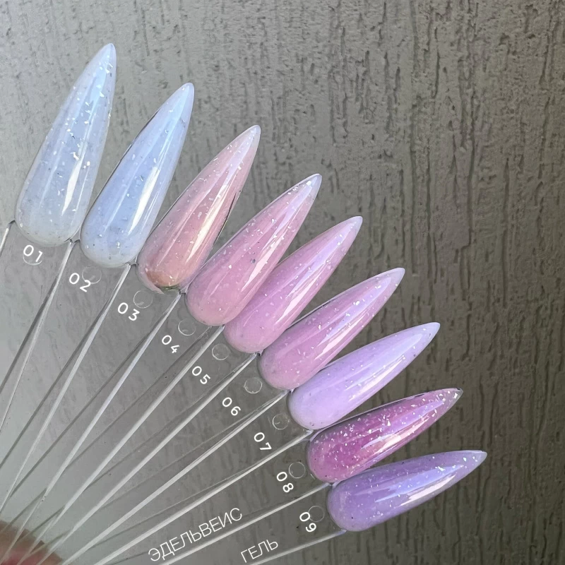 Камуфлирующие гели с мелким шиммером.