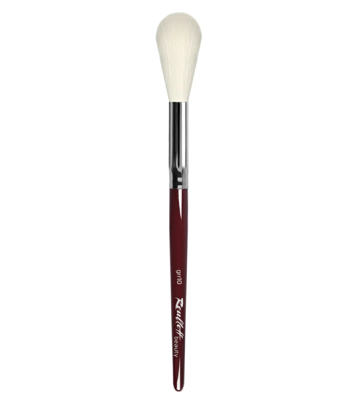Удобная факелообразная форма кисти идеальна для скул и спинки носа, позволяет достичь эффекта естественного сияния.