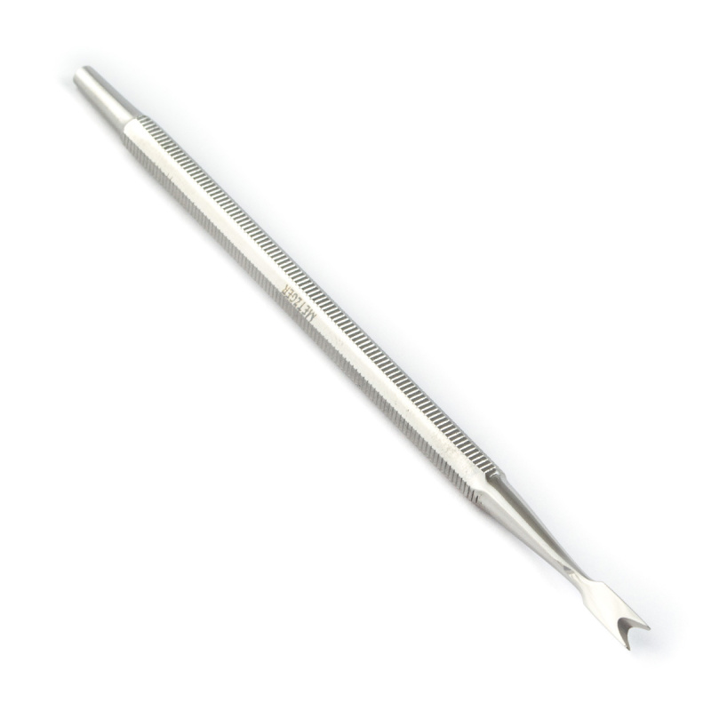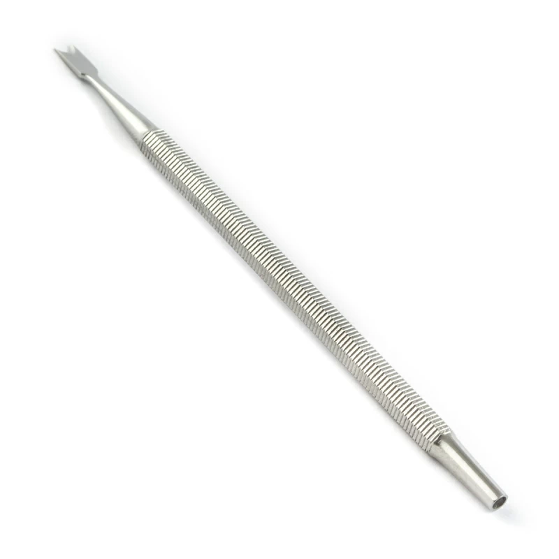 Аппликатор для пластин - тампонодержатель. Используется при педикюре. Незаменим при работе с "вросшим ногтем". Аккуратно удаляет отмершую кожу под ногтями. Инструмент с мелкой насечкой, что делает его удобным в обращении.