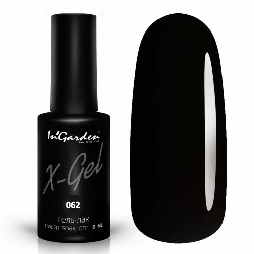 In’Garden X-gel №62 – гель-лак угольно-черного цвета. Черное покрытие ногтей по душе многим девушкам благодаря своей лаконичности и сдержанности. Если маникюр черного цвета кажется Вам скучным и мрачным, то сегодня нейл-мастера могут предложить различные техники, которые смогут его оживить, наделить магнетизмом и роскошностью. Модный маникюр гель-лаком In’Garden X-gel №62– популярный тренд среди многих представительниц женского пола, предпочитающих классику в изысканном исполнении.