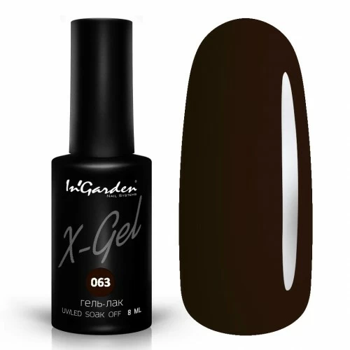 In’Garden X-gel №63 – гель-лак кофейного оттенка. Далеко не каждая женщина может позволить себе яркий и вычурный маникюр. Кому-то не позволяет работа, кому-то свои личные предпочтения. Но коричневый маникюр универсален. Он подойдет абсолютно для любого случая, будет уместен на любой работе и в любое время года.А при желании можно сделать маникюр гель-лакомIn’Garden X-gel №63 глубоким и интересным с помощью бархатного песка, матового топа, витражного покрытия, фольги, страз и других элементов декора ногтей, получая вкусные шоколадные дизайны.