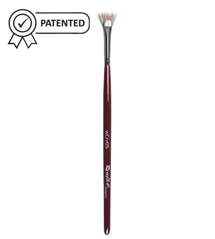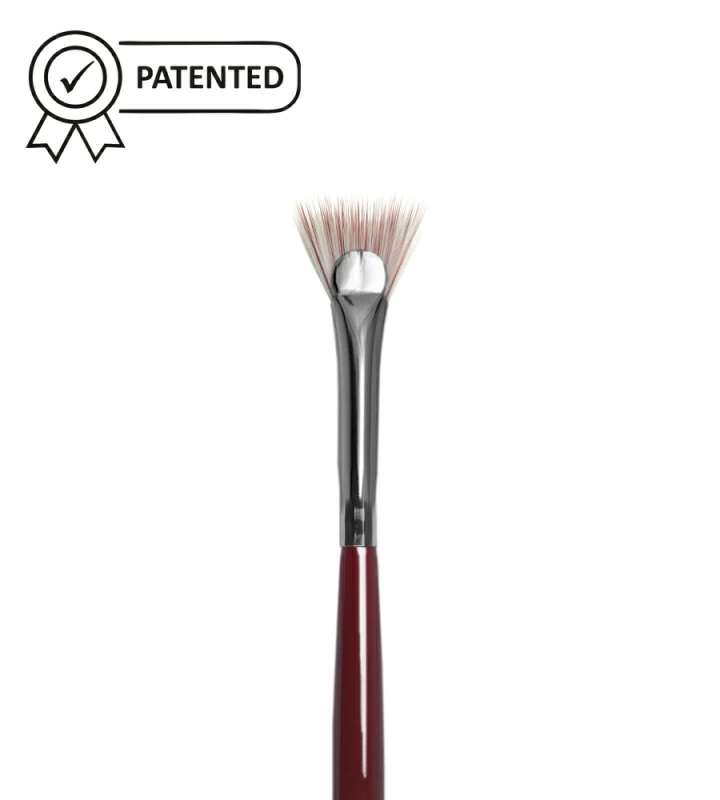 Кисть веерной формы из микса мягкой вишневой и более жесткой белой синтетики. Кисть идеальна для прокрашивания верхних и нижних ресниц от корней до самых кончиков.
