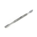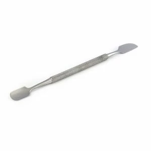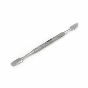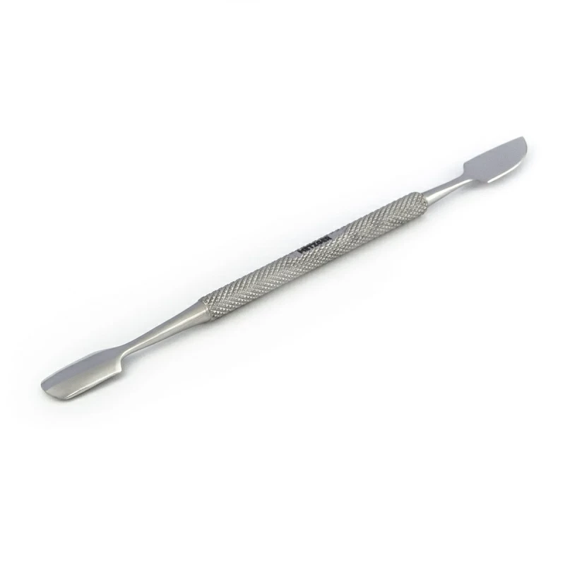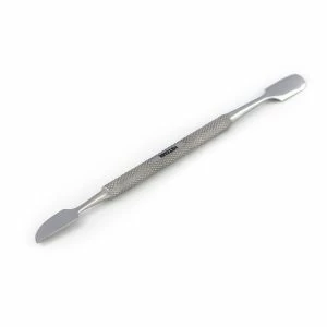 Профессиональный инструмент с двумя функциональными частями: с одной стороны лопатка (пушер) которая мягко отодвигает кутикулу, не царапая ногтевую пластину и с другой стороны топорик для чистки ногтей, удаления птеригия и очищения ногтя. Удаление птеригий – это обязательная гигиеническая процедура, благодаря которой предотвращается появление заусениц. Поэтому шабер применяется практически для всех подготовительных процедур при выполнении маникюра, в том числе и для подготовки ногтевых пластин к процедуре наращивания. Таким образом, данный инструмент необходим для ухода за пальцами рук и ног. Ручка инструмента ровная с антискользящей поверхностью, удобно лежит в руке что гарантирует мастеру – комфорт и легкость в работе с ним.