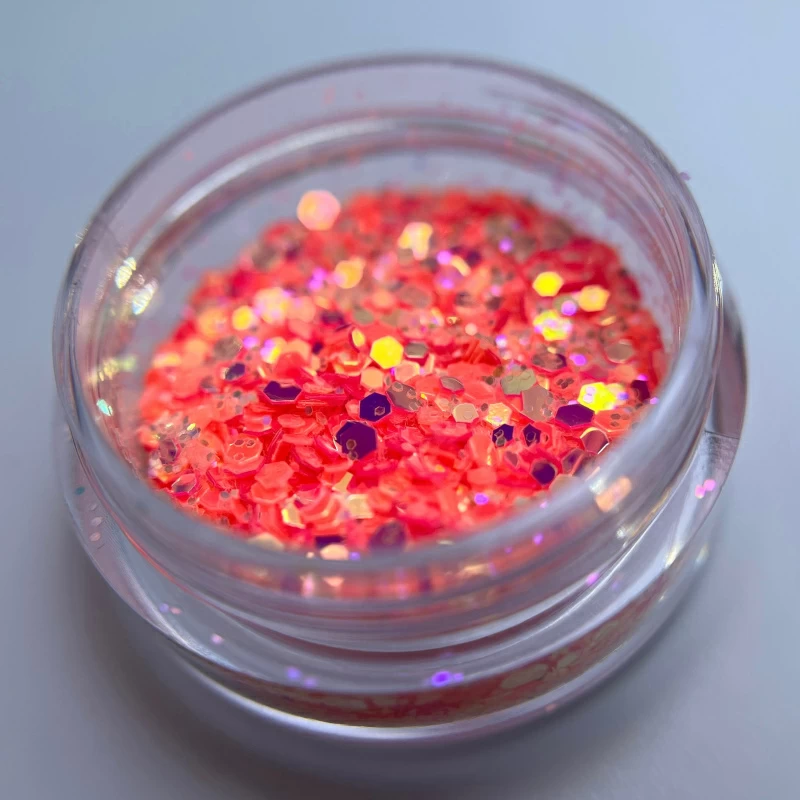 Микс шестигранников разного размера с мега блеском, флуоресцентный (светится в темноте).