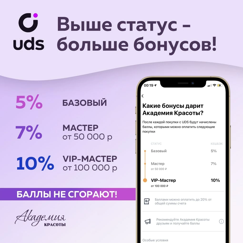 Баллы начисляются за все оплаты товаров и курсов в компании «Академия Красоты»